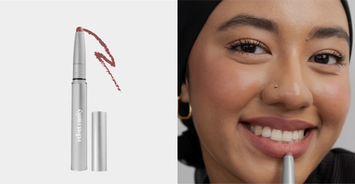 Shade to try: Suede – a warm-toned nude that flatters a wide range of skin tones and pairs perfectly with Velvet Vanity’s lip matte and lip oil.
