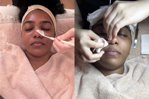 - Steaming to help open up my pores and soften my skin, making it ready for extraction.