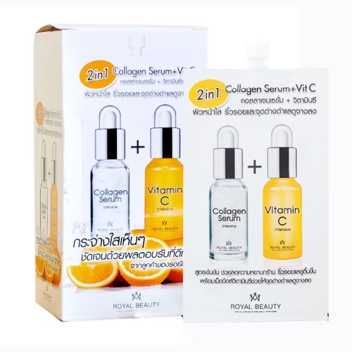 The collagen and vitamin C 2-in-1 serum from Royal Beauty is an excellent choice for reducing dark spots, firming the skin, and diminishing wrinkles. Collagen is crucial for maintaining skin elasticity, while Vitamin C helps brighten the skin and reduce dark spots.