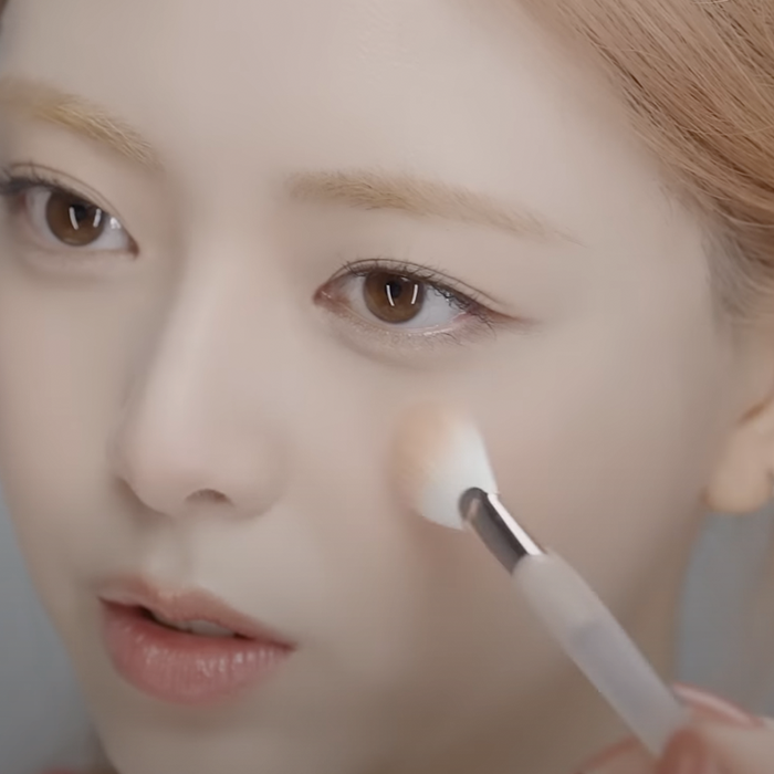 She uses the Const Pink highlighter on the tops of her cheekbones, creating a gentle, natural glow that reflects light beautifully without overwhelming her skin.