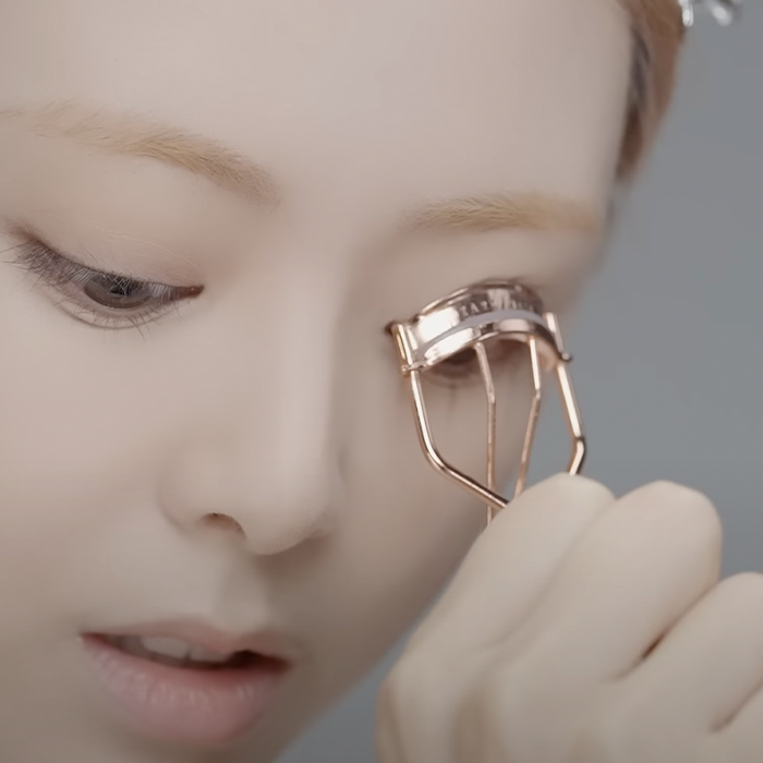 When curling her lashes, Yuna uses three gentle presses—starting at the base and moving upward with each squeeze. This technique helps create a soft, lifted curl that stays in place throughout the day, prepping the lashes perfectly before mascara.