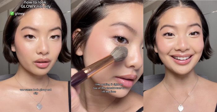 She mentioned that “this contrasting, powdered highlight is especially popular with K-pop girl groups, adding depth and drama without the typical dewy look.”