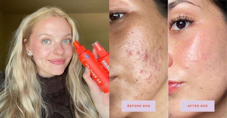 Source: tower28beauty/Instagram. Using a hypochlorous acid-infused spray, before/after.