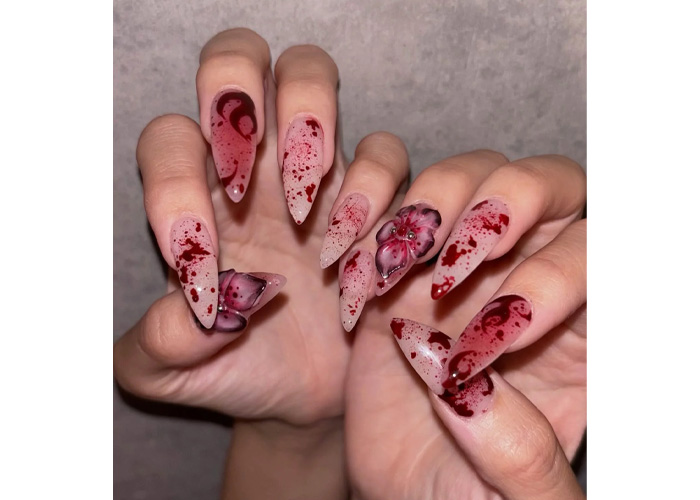 This “Bloody Garden” style transforms each nail into a little gothic work of art – stunningly grotesque, dramatic, and totally eerie. It’s the perfect blend of macabre art and a bold fashion statement.