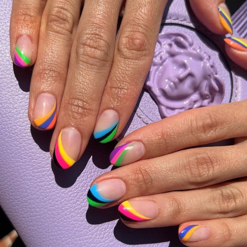 We’re really digging how the floral patterns bring a burst of life to the neutral base. This bordered nail style introduces a delicate hint of colour to your manicure without overwhelming the entire nail.