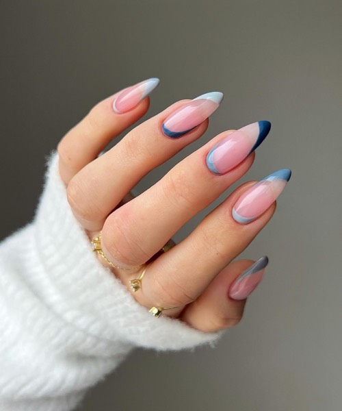 For this nail design you can choose any duo colours instead of this baby blue, but if you love the colour, you can still stick with it as it looks absolutely stunning, though it looks simple. The blend of two shades is what makes this nail design stands out even more.